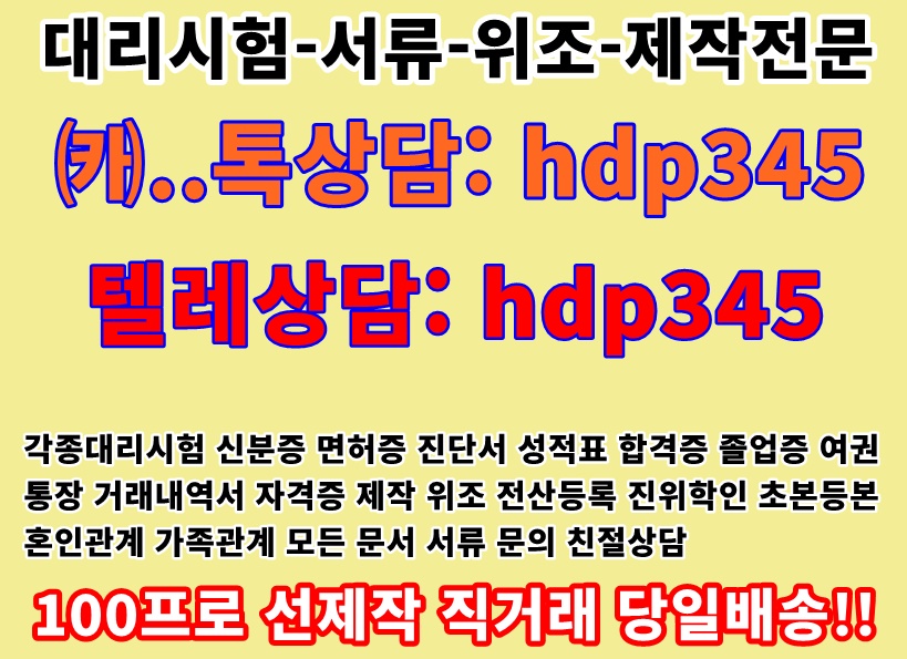 대리시험전문 ◆「 ✚ㅋㅏ톡: hdp345 ✚텔레: hdp345」◆ #졸업증명서위조 #주민등록증제작 #문서위조 #서류위조 #…