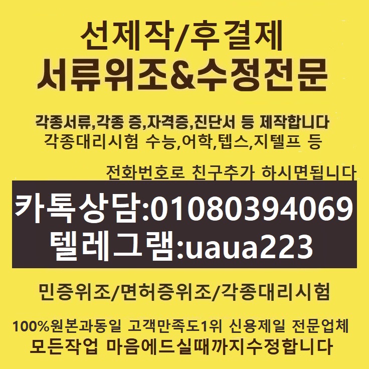 [위조수정]초본등본가족관계증명서위조↔대리시험#톡상담친추+01080394069텔레uaua223외국인신분증제작#잔액증명서제작#자격…